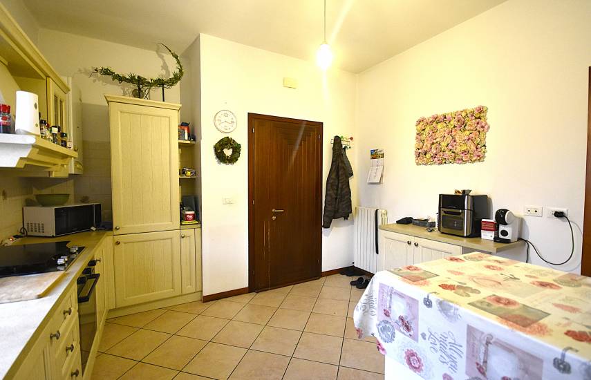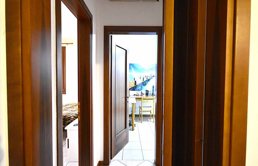 L’appartamento accoglie con un’atmosfera calda e luminosa. L’ingresso si apre direttamente sulla zona giorno di generose dimensioni, uno spazio arioso e funzionale che invita immediatamente alla convivialità. La cucina, separata e ben organizzata, è perfetta per chi ama cucinare in un ambiente dedicato, mentre il salone offre un luogo ideale per il relax quotidiano o per godersi momenti in compagnia.