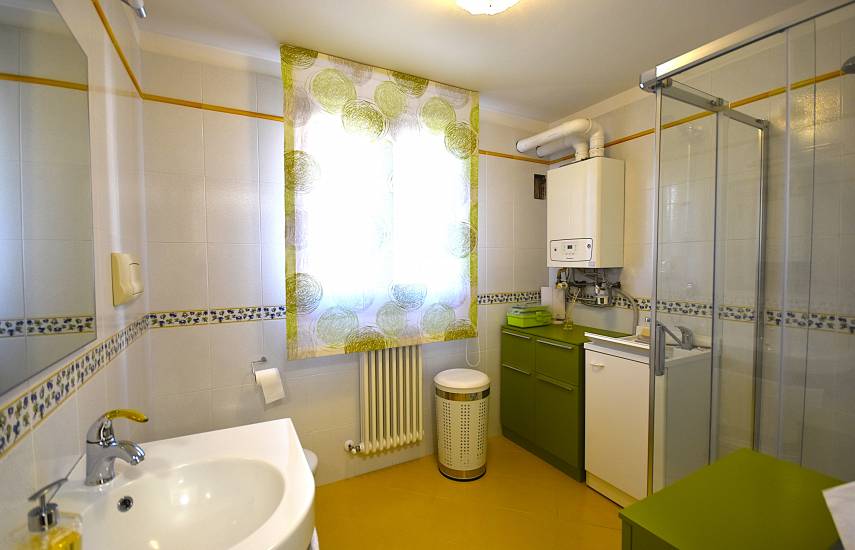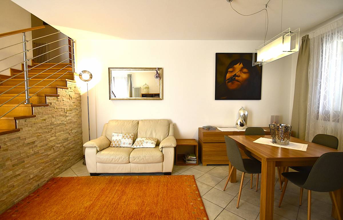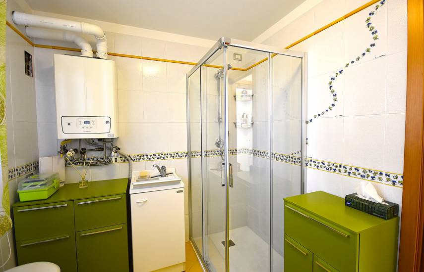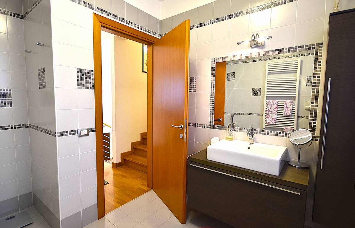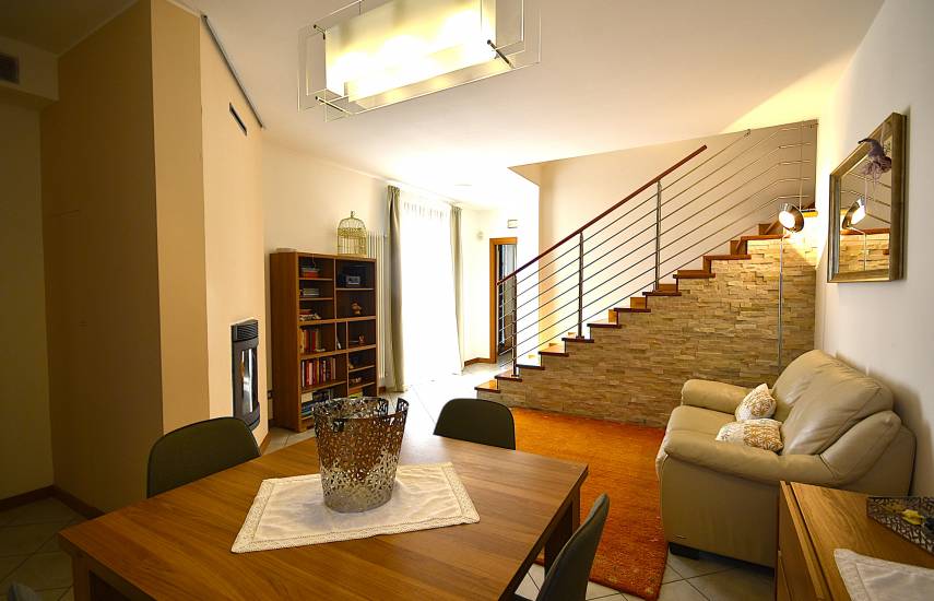 Al piano terra trovano posto anche il bagno-lavanderia, pratico e funzionale, e il garage collegato internamente, comodo soprattutto durante i mesi invernali o per chi desidera uno spazio tecnico aggiuntivo.